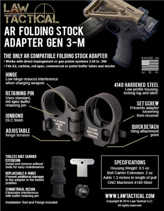 The law tactical folding stock adapter was designed for low profile transport of ar rifles. Don't forget to like, follow and subscribe to us on our social media pages for the most up to date specials and new products. Drawback #2 is the width that the folding stock adapter makes the rifle when open. I picked one up at the shot show. Full auto, semi auto, 5.56 to.308.